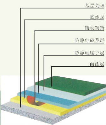 用防靜電環(huán)氧中涂調(diào)石英粉或雙飛粉批刮膩子層 |